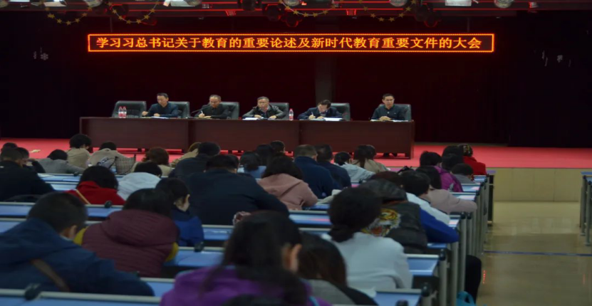 曾书记要求与会人员:认真学习新时代习总书记关于教育的重要论述,并指出“培养什么样的人、怎样培养人、为谁培养人”的问题,阐明了立德树人教育的根本任务,为党育人,为国育才,立志做“四有”好教师,起到“四个引路人”的作用,全面贯彻党的教育方针,培养能担当民族复兴大任的新时代人才。