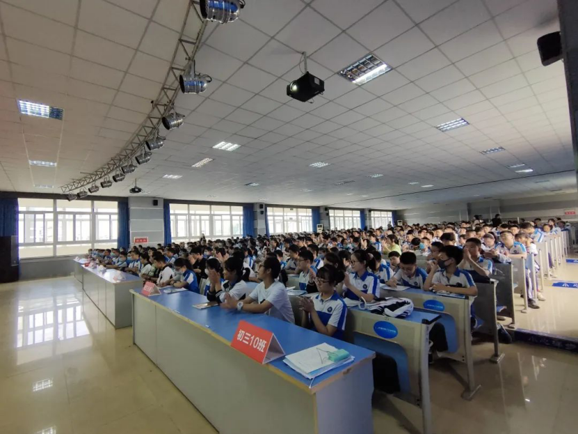9月4日下午一场特殊的班会课正在进行时——全体初三学生与优秀学长学姐经验交流会。