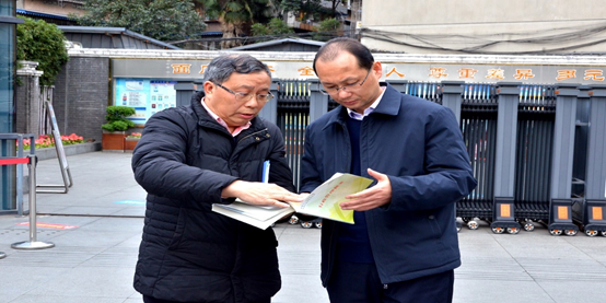 2021年3月1日,区委教育工委书记、区教育局党组书记、局长丁学林到我校白果林校区检查开学情况以及疫情防控相关工作,充分肯定了学校的安全、常规、经验传承和校园特色等工作。