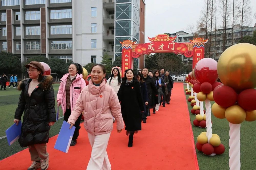 在学校领导和老师的温情注视下,伴着师长和父母的期许和祝福,初三学子与班主任、家长一起,走入成功之门。学校毕业班领导小组击鼓迎接学生。一路红毯,一步一个脚印,走出去的都是坦途;一声加油,终将披荆斩棘,抵达成功的彼岸。