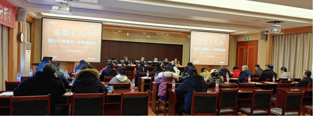 1月16日下午,我校在四楼大会议室召开成都一诊考试成绩分析会。学校党委副书记、校长胡林,副校长高成洪、罗德龙、陈棡、黄泽兵、王毅,各处室主任和高三全体教师参加会议,会议由副校长黄泽兵主持。