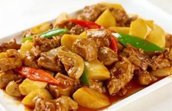 晚餐:玉米鸡丁、花菜炒肉片、酸辣粉条、莲藕红豆汤