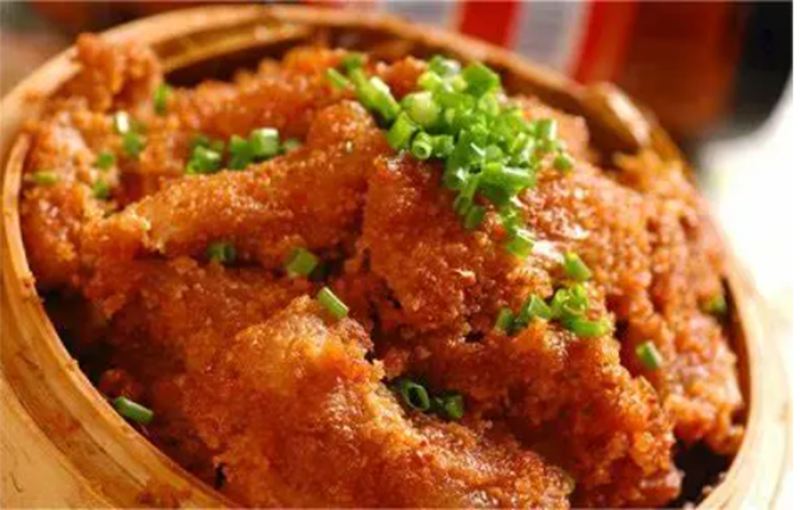 午餐:粉蒸肉、芋儿烧鸡、炝炒莲白、凤尾汤