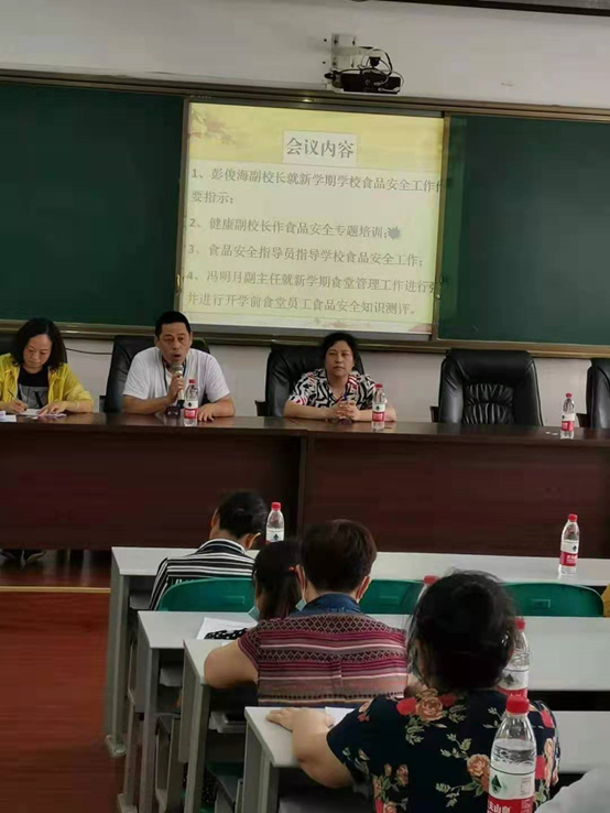 彭俊海副校长结合食品安全指导员、健康副校长所作的食品安全专题培训,及上级对食品安全的工作要求,对新学期食品安全工作作了要求,要求全体食品安全从业人员要守好安全的底线,严格按学校要求规范开展工作,确保食品安全,为全体师生把好入口关。