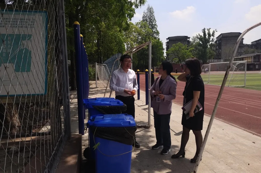 4月19日上午,金牛区责任督学何焰和金牛区政府兼职督学赖欣来到我校白果林校区,开展金牛区校园生活垃圾减量分类专项督导工作。