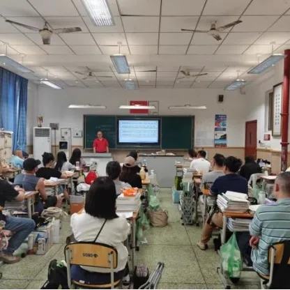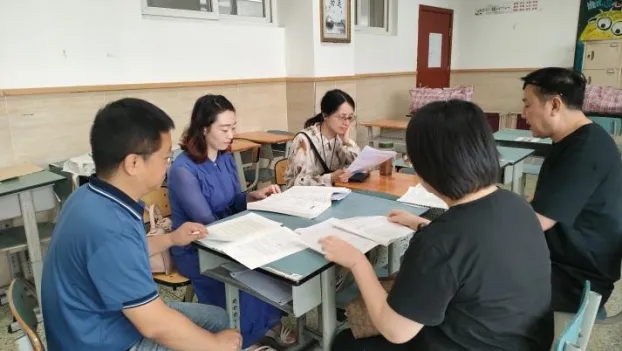 家长们参加分班家长会,与班主任及科任老师交流学生的情况。
