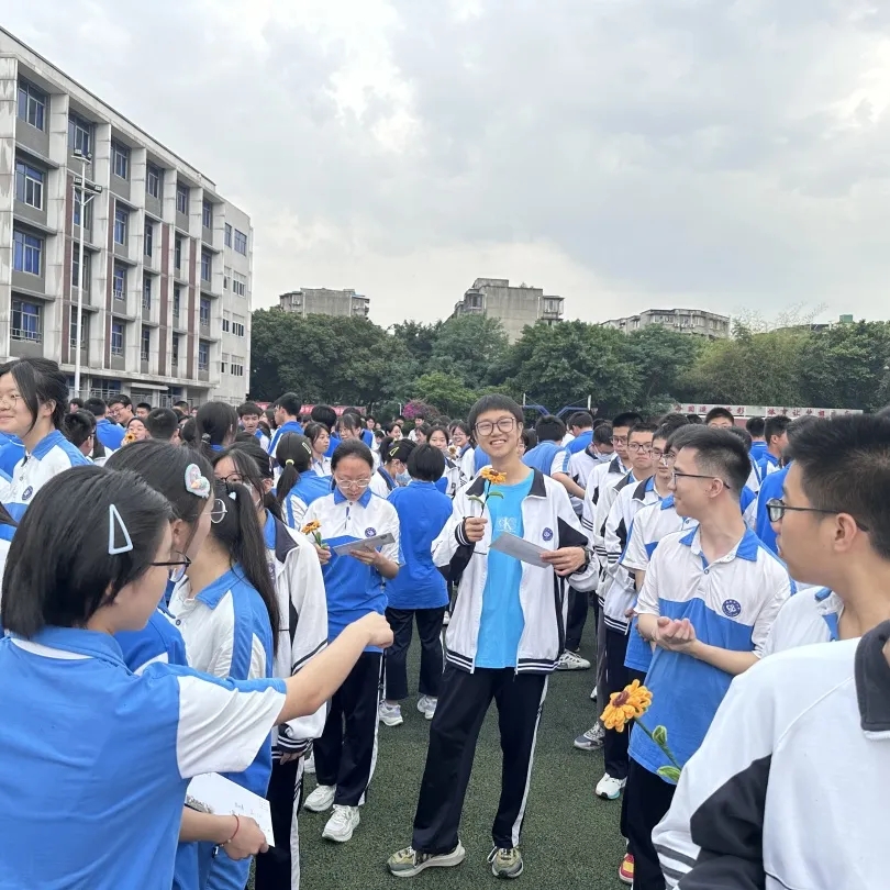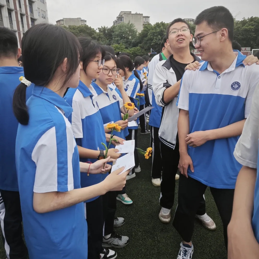 6月5日,校长胡林、副校长罗德龙、王毅,以及高三全体师生和家长们,齐聚六楼演播厅,为即将迎来高考的高三学子们举行了一场壮行会。在何林蔚老师的主持下,会议温馨而庄重。 胡校长勉励同学们,他讲了三点:首先,他向通过一系列考试的高三学子们表示热烈的祝贺;其次,他给出了临考前的贴心提醒;最后,他衷心希望每位学子都能在高考中展现出自己的真实实力。 会议的最后环节,胡校长带领着各班的班主任和科任老师们,在学校中门一一与高三学子们击掌鼓励,为他们加油打气,祝愿他们在即将到来的高考中取得辉煌胜利。 5月13日,我校高三年级在阅览室召开了三诊考试分析会议,旨在精细梳理学生现状,为冲刺阶段复习制定个性化策略,确保备考工作高效精准,全力备战高考。 学校党委副书记、校长胡林,副校长罗德龙、陈棡、黄泽兵、王毅,德育处主任黄超、教务处副主任刘东奇出席会议,高2024届全体教师参加会议。会议由副校长黄泽兵主持。 教务处副主任刘东奇对此次“三诊”成绩从各个方面进行了详细分析,为后续冲刺备考提供了数据依据。 副校长王毅对老师们的辛勤付出表示感谢,对冲刺阶段的工作推进计划表进行了详细的解读,强调高效课堂、个别辅导和心理关照的重要性。 5月27日,成都十八中举行了一场富有意义的一举夺魁仪式,为每一位高三学子送上鼓励与祝福! “可曾沾雨露,不改向阳心”。向日葵,代表忠诚、希望和光明,忠诚于自己的梦想,怀揣着对未来的希望,一路朝阳。在高考来临之际,向日葵还寓意着高三学子们勇往直前,一举夺魁(“葵”)! 当高三的同学们拆开信封,读到三年前的自己写下的文字,那些青涩的梦想、坚定的誓言、对未来的期待再次涌上心头。这份穿越时空的礼物,不仅是对过去的回忆,更是对未来的鼓舞。这封信提醒着他们,无论面对怎样的困难和挑战,都要保持那份初心和热情,勇敢追求自己的梦想。 高三征程近尾声,师生齐心誓夺胜。 科学备考不懈怠,奋发图强显豪情。 汗水铸就辉煌路,信念坚定向前行。 共祝学子梦成真,高考舞台展才能。 心仪学府待君入,理想启航新人生。 美好未来属于你,幸福篇章共见证!