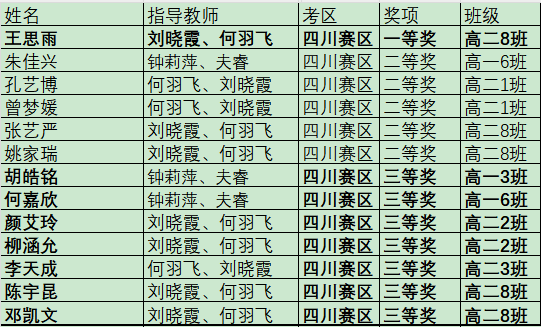 在学校地理教研组的精心组织、辅导下,参赛的学生取得了优异成绩:共13名同学获奖,其中获省级一等奖1人,二等奖5人,三等奖7人。