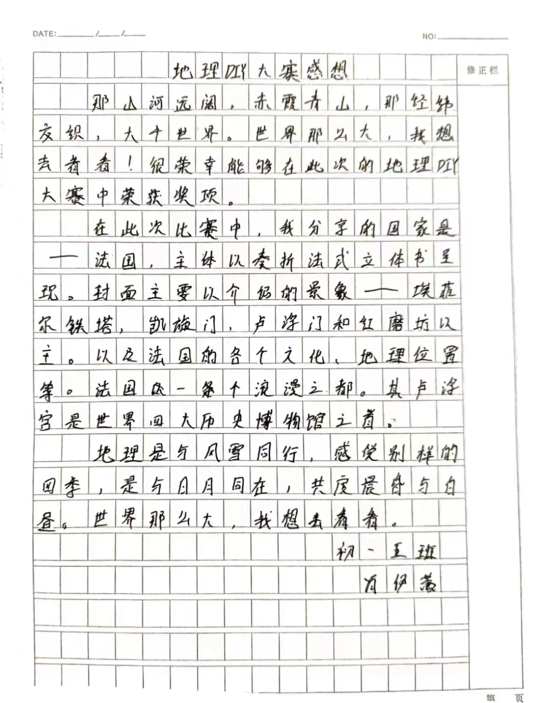初一7班 颜千晰