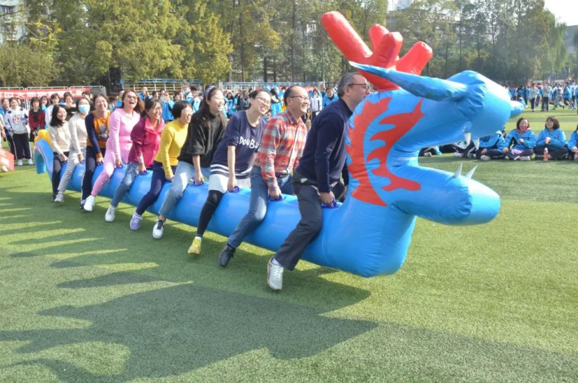本次运动会采用集体项目这样特别的形式,展现着18中人团结的力量。陆地龙舟、八仙过海、快乐大脚等有趣又有意的项目让老师及同学们在操场上肆意挥洒着青春与汗水。