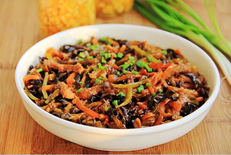 午餐:黄焖兔丁、彩椒肉丝、毛血旺、山药红豆汤